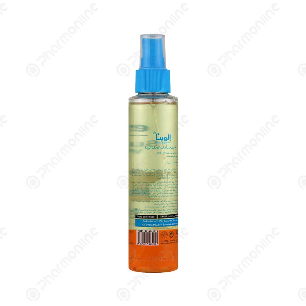 اسپری ضد آفتاب کودک الوینا با فرمولاسیون ملایم و فاقد مواد حساسیت زا، به طور ویژه برای پوست ظریف کودکان شما طراحی شده تا از پوستشان در مقابل اشعههای مضر خورشید محافظت به عمل آورد. این اسپری بافت سبک داشته و دارای خاصیت ضد آب است.