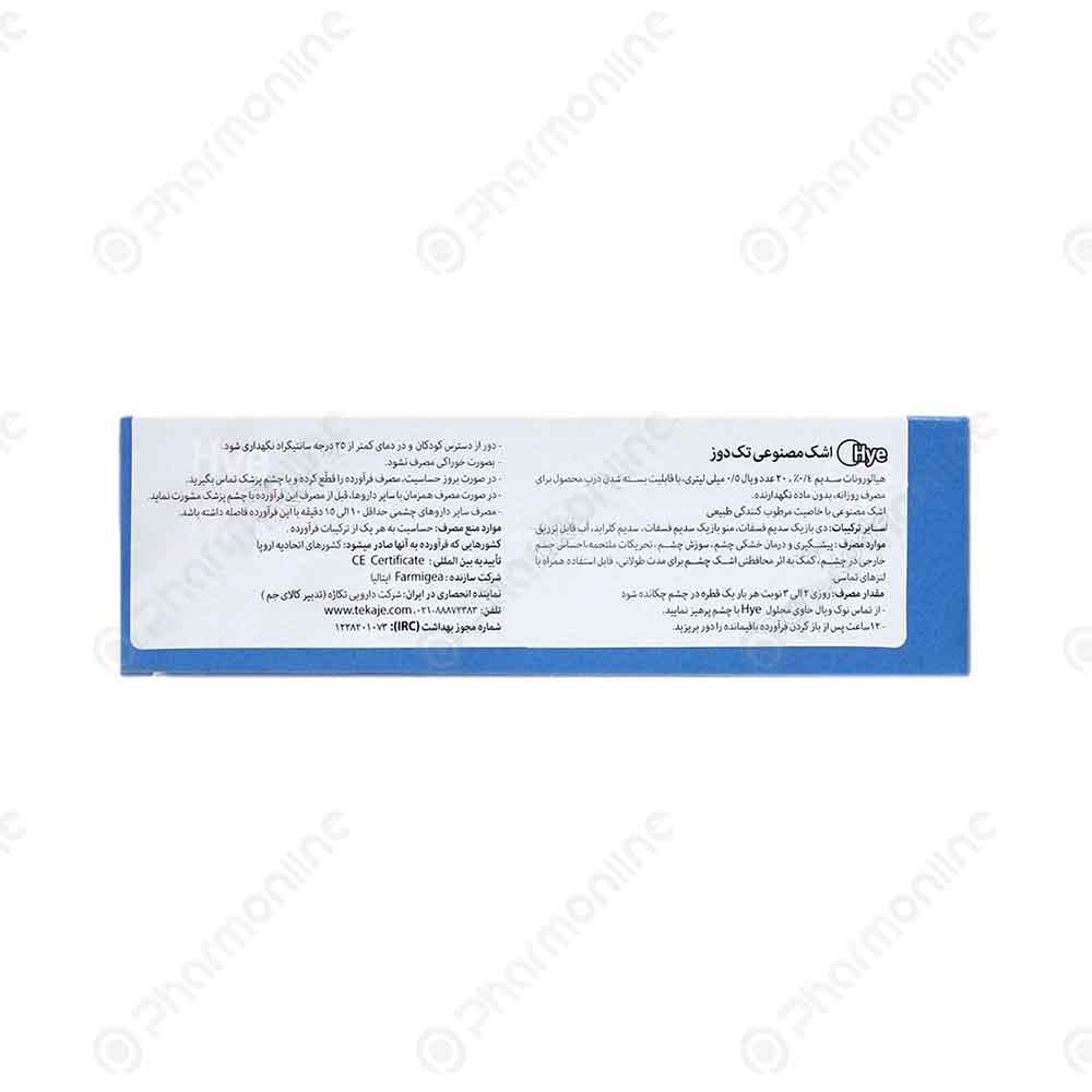 قطره اشک مصنوعی های hye، یک قطره تک دوز استریل چشمی برای رفع خشکی چشم است. از جمله خواص و موارد استفاده قطره اشک مصنوعی های میتوان به پیشگیری و درمان خشک چشم، رفع سوزش و التهاب چشم، رفع احساس وجود جسم خارجی در چشم و کمک به اثر محافظتی اشک چشم برای مدت طولانی اشاره کرد.