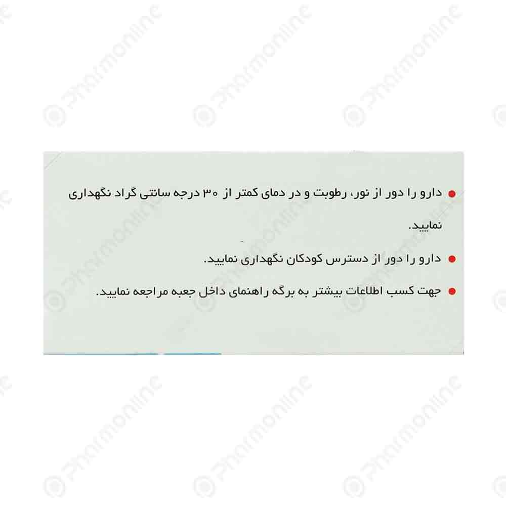 - دارو را دور از نور، رطوبت و در دمای کمتر از 30 درجه سانتیگراد نگهداری نمایید.