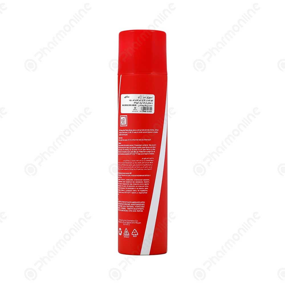 اسپری قوی مو مای بهعنوان آخرین مرحله استایلینگ استفاده میشود و باعث تثبیت فرم موها و حفظ حالت آن در طول روز میگردد.