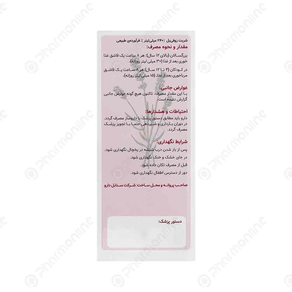 شربت زوفی بل سنابل (شربت زوفیبل) یک داروی گیاهی است که برای درمان سرفه، سرماخوردگی، آنفولانزا، برونشیت و آسم استفاده میشود. این شربت حاوی عصاره گیاه زوفا است که دارای خواص ضد سرفه، خلط آور، ضد التهاب و ضد میکروب است. شربت زوفی بل مناسب برای درمان آسم، رفع حساسیت فصلی بینی و رفع برونشیت مزمن است.