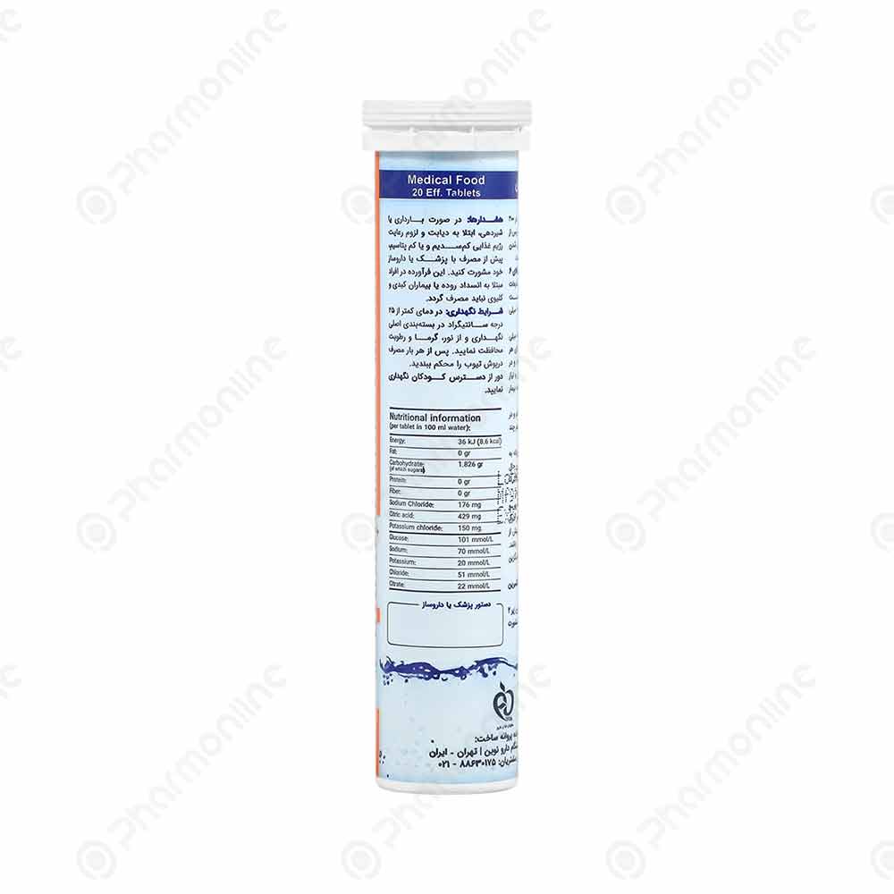 - نحوه مصرف برای کودکان بالای 6 سال و بزرگسالان: در هر بار کاهش سطح مایعات بدن، باید 2 عدد قرص جوشان به میزان 200 میلیلیتر در آب جوشیده سرد حل شود و به بیمار داده شود.