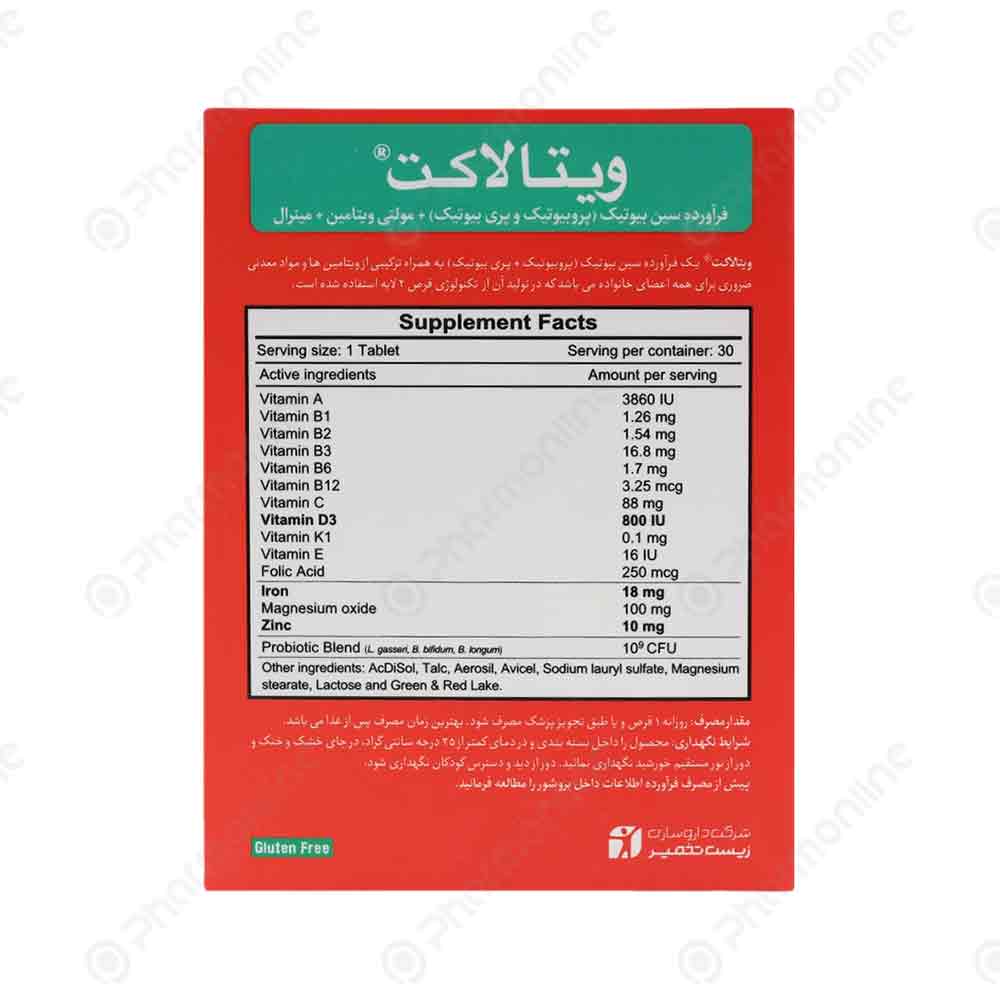 - قرص ویتالاکت مولتی ویتامین مینرال حاوی پروبیوتیک