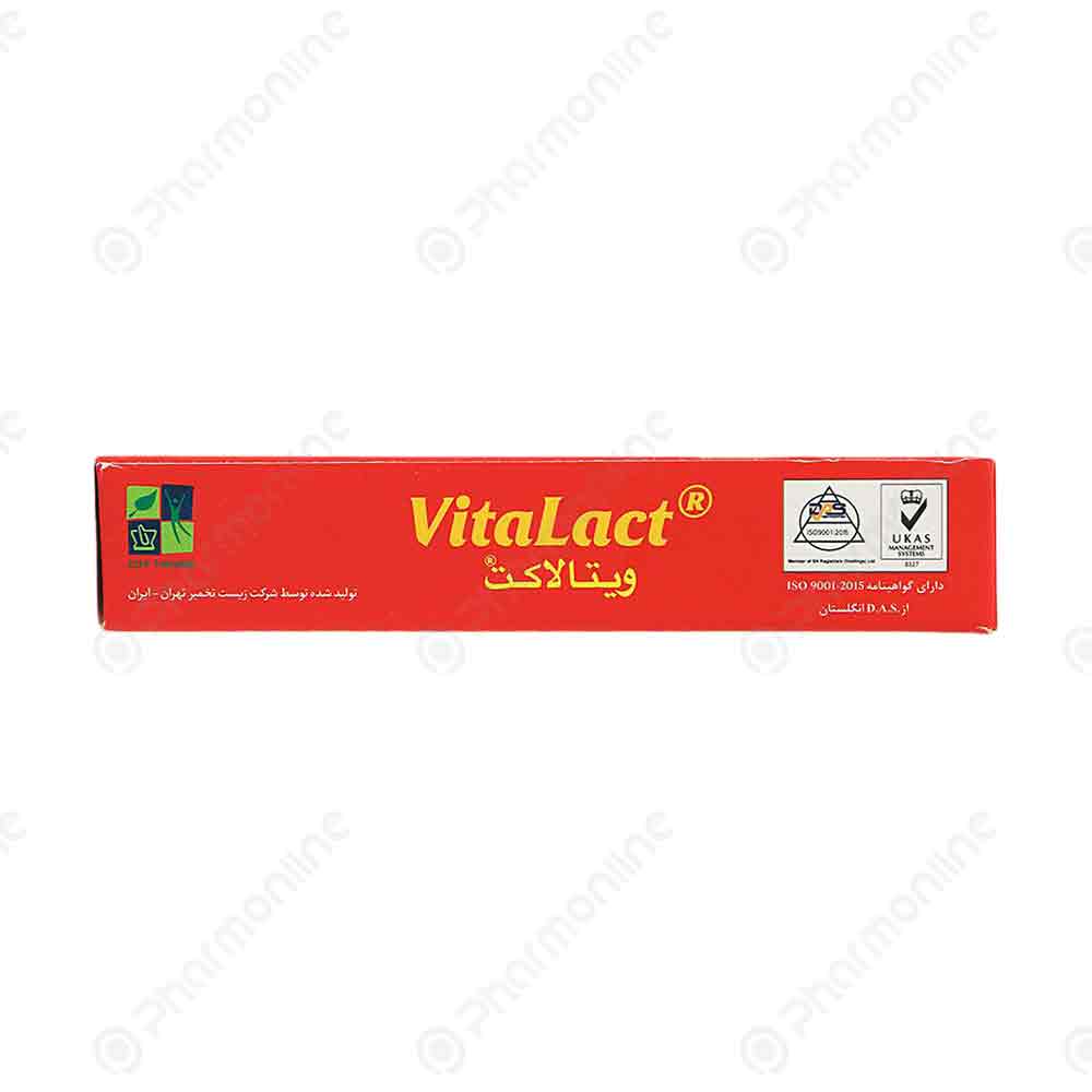 قرص ویتالاکت با تکنولوژی منحصر به فرد قرص دولایه، پروبیوتیکها، ویتامینها و مواد معدنی را در یک قرص با کمترین تداخل در کنار یکدیگر قرار داده است. پروبیوتیکها باعث افزایش جذب ویتامین و مواد معدنی میشوند. ویتالاکت مناسب مصرف برای افراد بزرگسال میباشد.
